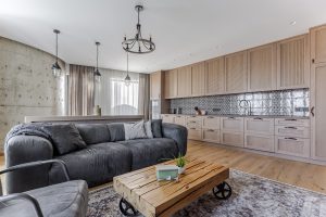 Svetainė moderniame lofto tipo bute nuomai